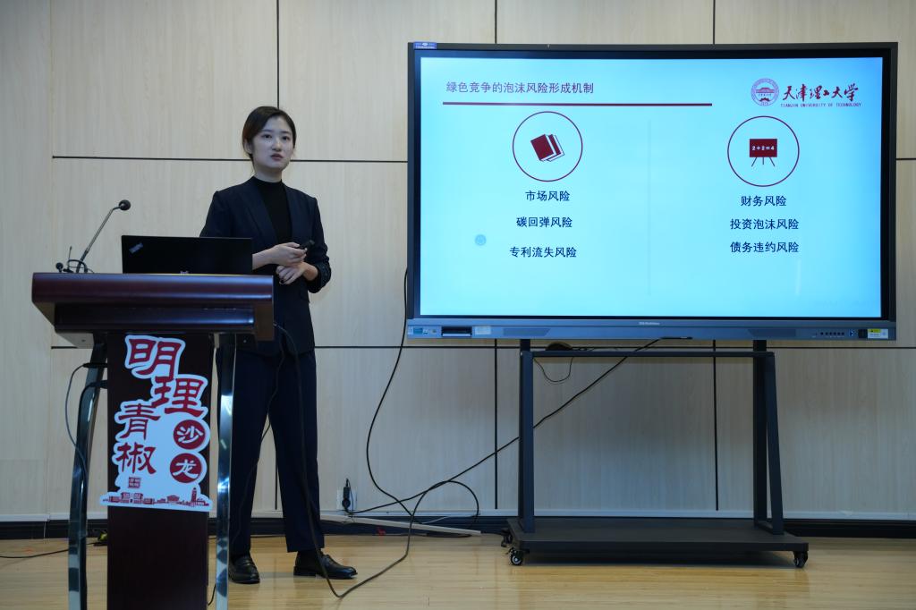 王晓祺作“双碳目标下地方政府绿色创新竞争的泡沫风险识别与防范研究”报告,该项目通过实证分析、风险建模与政策仿真等方法,对绿色创新竞争的时空格局演化、企业动机差异、泡沫风险的形成与多层级传导机制进行考察,探究差异化政策工具的治理效能与优化组合设计。