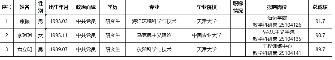 按照《天津市事业单位公开招聘人员实施办法(试行)》(津人社局发[2011]10号)要求,现将天津理工大学2025年度公开招聘方案(博士岗)部分岗位拟聘人员予以公示。