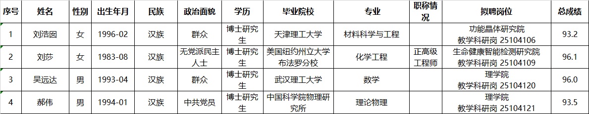 按照《天津市事业单位公开招聘人员实施办法(试行)》(津人社局发[2011]10号)要求,现将天津理工大学2025年度公开招聘方案(博士岗)部分岗位拟聘人员予以公示。