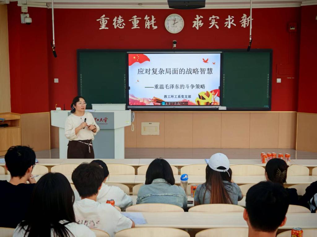 9月24日,学校2025年“明德讲堂”师德巡讲系列活动第十五讲(总第162讲)开讲。环境科学与安全工程学院教师陈丽然以“应对复杂局面的战略智慧——重温毛泽东的斗争策略”为题,面向学院本科生党员和积极分子开展宣讲。