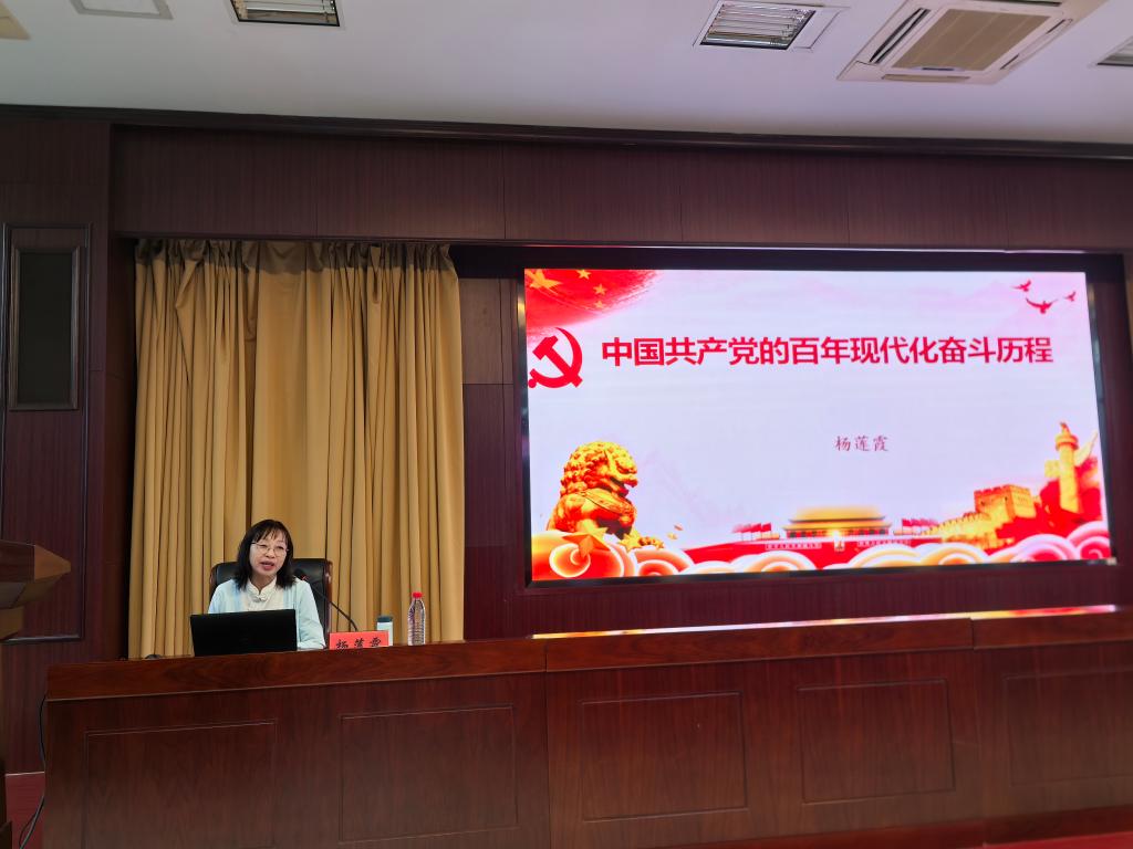 杨莲霞教授以“中国共产党的百年现代化奋斗历程”为题,围绕“国殇、难题、离愁、破题”四个专题,阐述了中国现代化道路的探索历程、中国共产党为人民谋幸福的初心使命、现代中国的现代化实践以及坚持走中国式现代化的时代意义,激励青年教师牢记为党育人、为国育才的初心使命,积极服务国家重大战略需求,投身学校“双一流”建设,在培养担当民族复兴大任的时代新人中展现青春作为、贡献智慧力量。